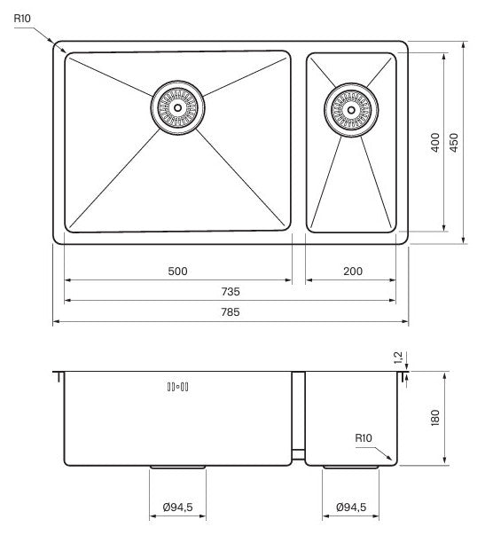 Bänkskiva rostfritt stål